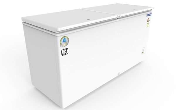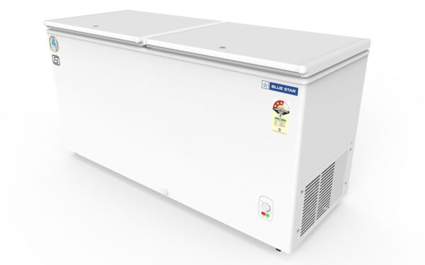 The Blue Star Deep Freezer CF3-500MEW is a double-door deep freezer with a gross capacity of 500 litres and a net capacity of 484 litres. It features a convertible function with temperature control from –26°C to +8°C. The static cooling system with eco-friendly R290 refrigerant ensures efficient performance. Its top-opening dual-door design, castor wheels, and safety lock make it easy to use and move. Ideal for restaurants, shops, and commercial use, this Blue Star freezer offers durability, bulk storage, and energy efficiency.