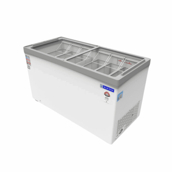 5-Star Blue Star GT5-475N/NP is a double-door glass top deep freezer. It offers a gross capacity of 421 litres and a net capacity of 421 litres. The freezer delivers efficient cooling with a temperature range of –13°C to –26°C. It operates on a static cooling system using eco-friendly R290 refrigerant for reliable performance. The dual sliding glass doors and 6 storage baskets make organising and accessing items simple. A safety lock and defrost drain ensure convenience and security. Castor wheels provide easy mobility, even when fully loaded. This freezer suits retail stores, commercial kitchens, and bulk storage. It offers durability, efficiency, and user-friendly operation.