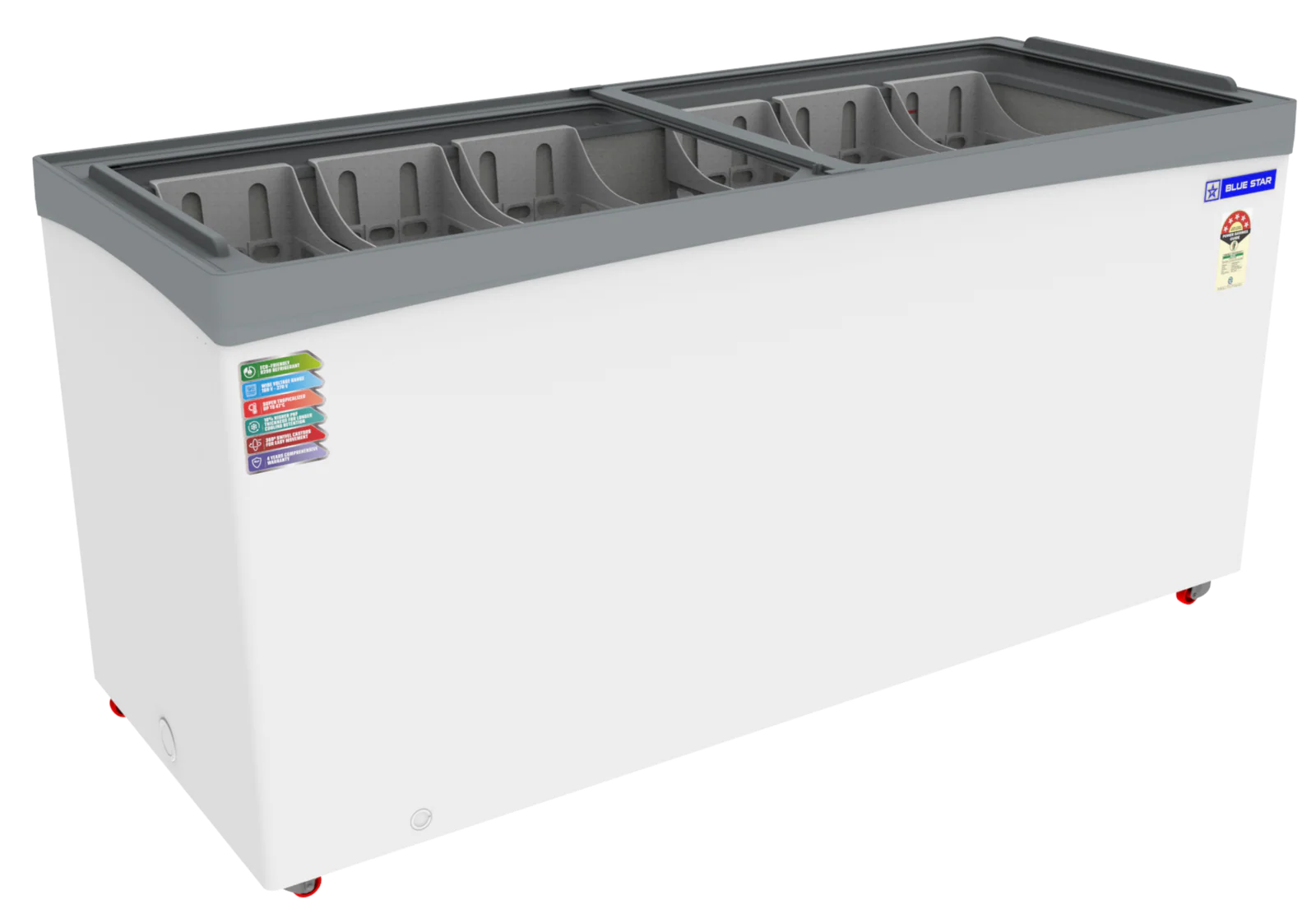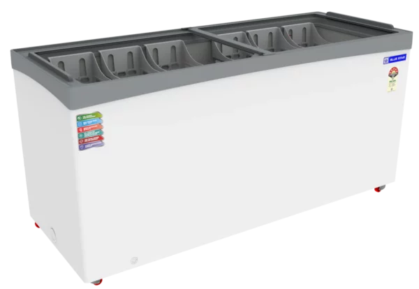 This is a Blue Star GT5-410NP 365 Litre Glass Deep Freezer, 5-Star rated.