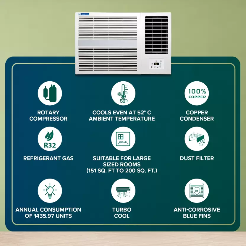 - Energy Efficient: Blue Star Window AC WFD324E boasts a 3-star rating with an ISEER of 3.18, consuming approximately 1435.97 units annually over 1600 hours of usage.