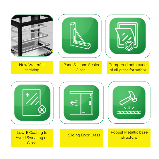 The Western PTW06HC Pastry Display Counter is designed for cafés, bakeries, and small food outlets that need a compact and efficient pastry showcase. It offers a 232-litre gross capacity, providing you with enough room to display cakes, pastries, and desserts in an organised and attractive layout. The sliding glass door provides easy access for staff while maintaining a clean, modern appearance for customers. This counter maintains your desserts’ freshness with a temperature range of +2°C to +10°C. The energy-efficient LED lighting brightens every shelf, making your offerings stand out while consuming minimal power. The use of eco-friendly R134A refrigerant ensures reliable and environmentally conscious cooling performance.